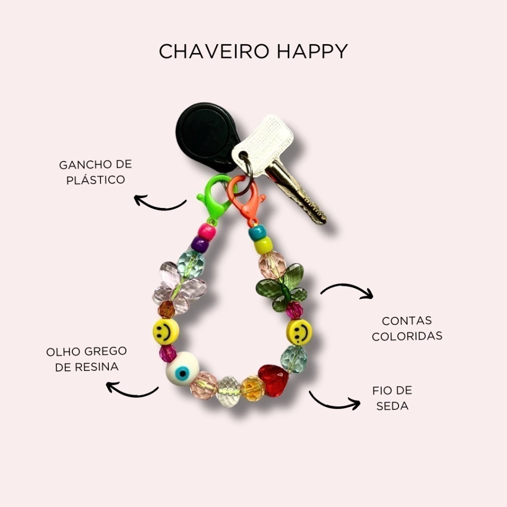 Chaveiro em contas de miçangas variadas acrílico e murano;
